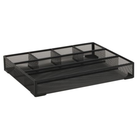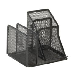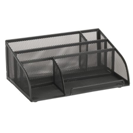 This silver mesh desk organizer is designed as a double tray with five stacking sorter sections.